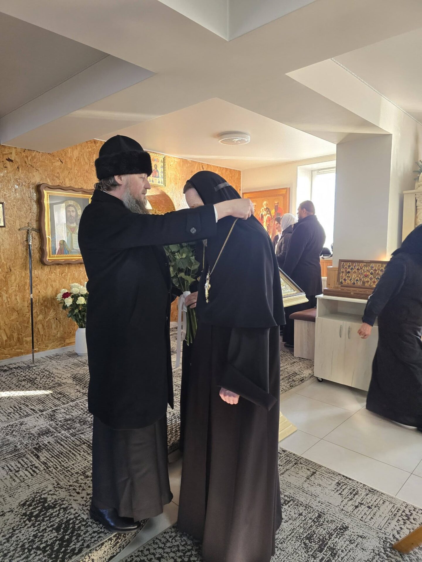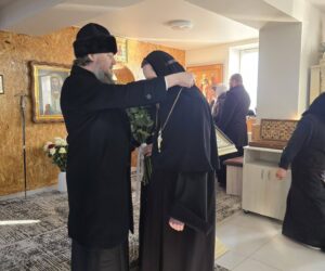 La sosire, Ierarhul a fost întâmpinat de egumena VASA (Balan), stareța așezământului monastic, de părintele duhovnic, arhimandritul SAVATIE (Cvasnîi), împreună cu obștea monahală.