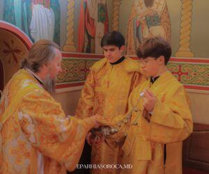 Alături de Înaltpreasfinția Sa au slujit ieromonahul SERAFIM (Prisăcaru), stareț al mănăstirii „Sfinții Arhangheli Mihail și Gavriil” din satul Stîrceni, raionul Florești și diaconul Nicolae ȚARĂLUNGĂ, cleric al bisericii „Sfântul Mare Mucenic Dimitrie” din municipiul Soroca.