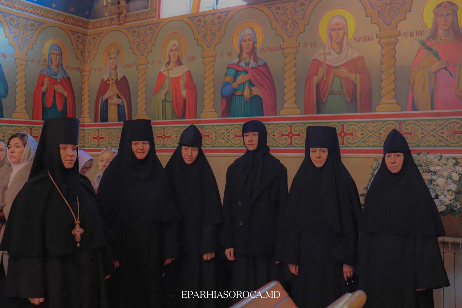 În biserică s-au rugat arhimandritul VLASIE (Ușurelu), starețul mănăstirii Nicoreni, egumena PARASCHEVA (Gușan), stareța mănăstirii Japca, preoți, monahi și credincioși, veniți la sărbătoare.
