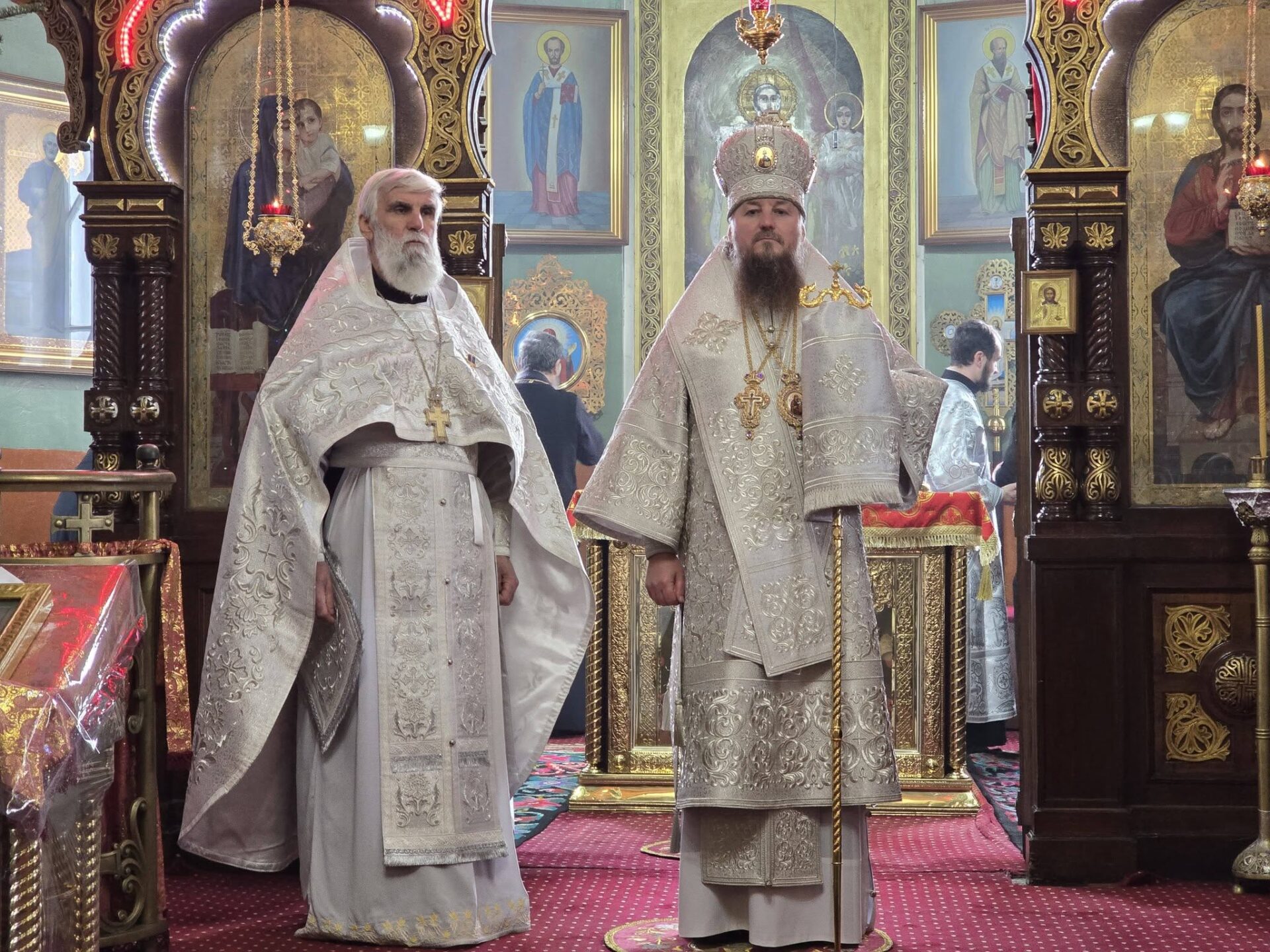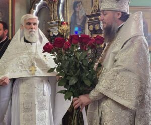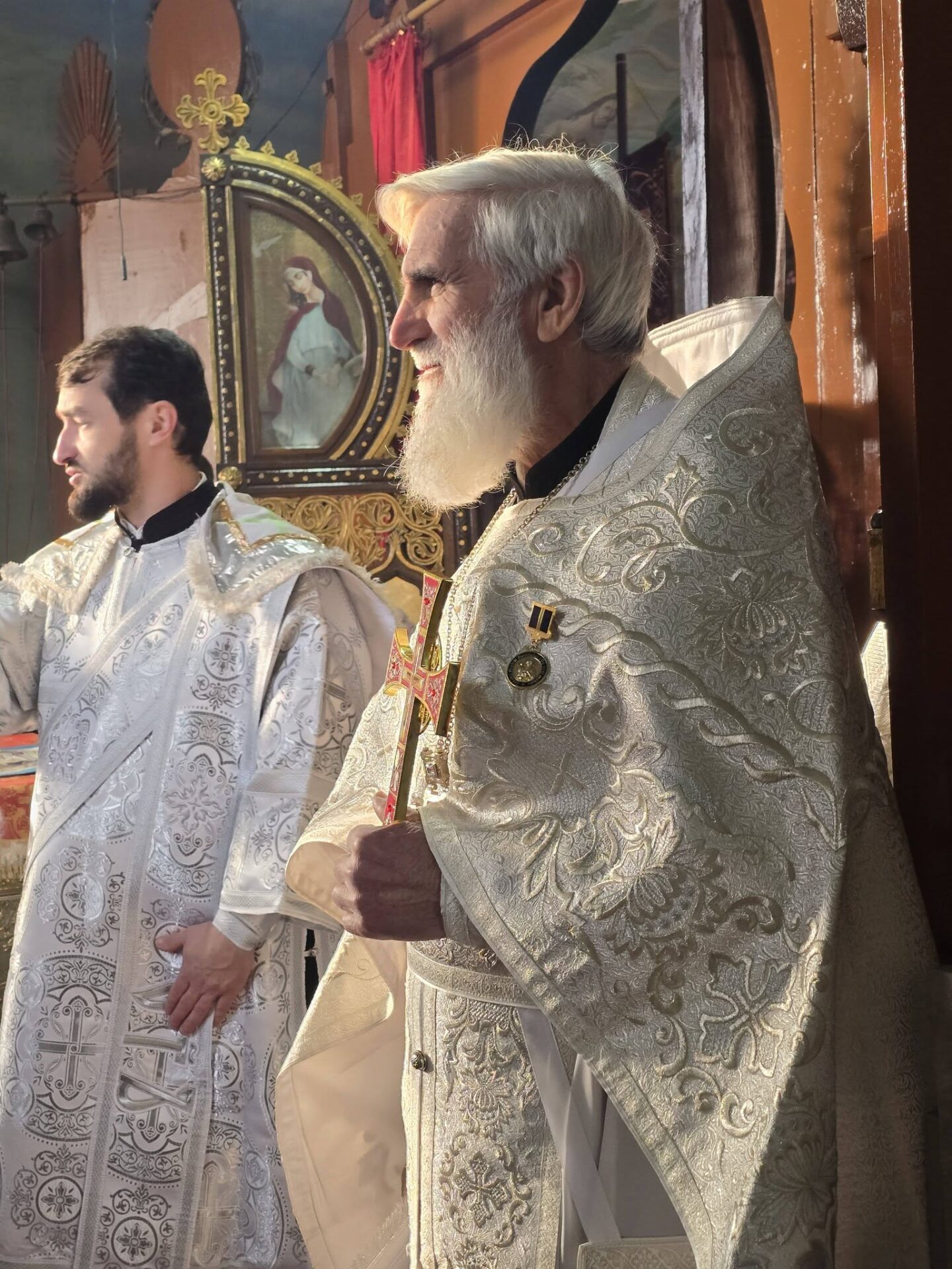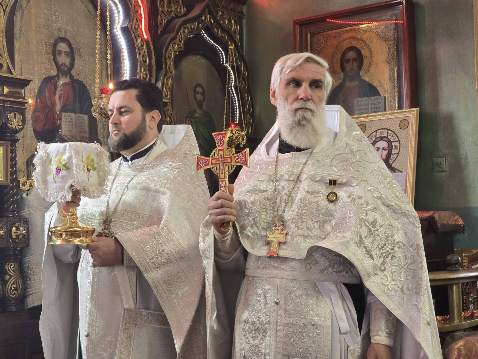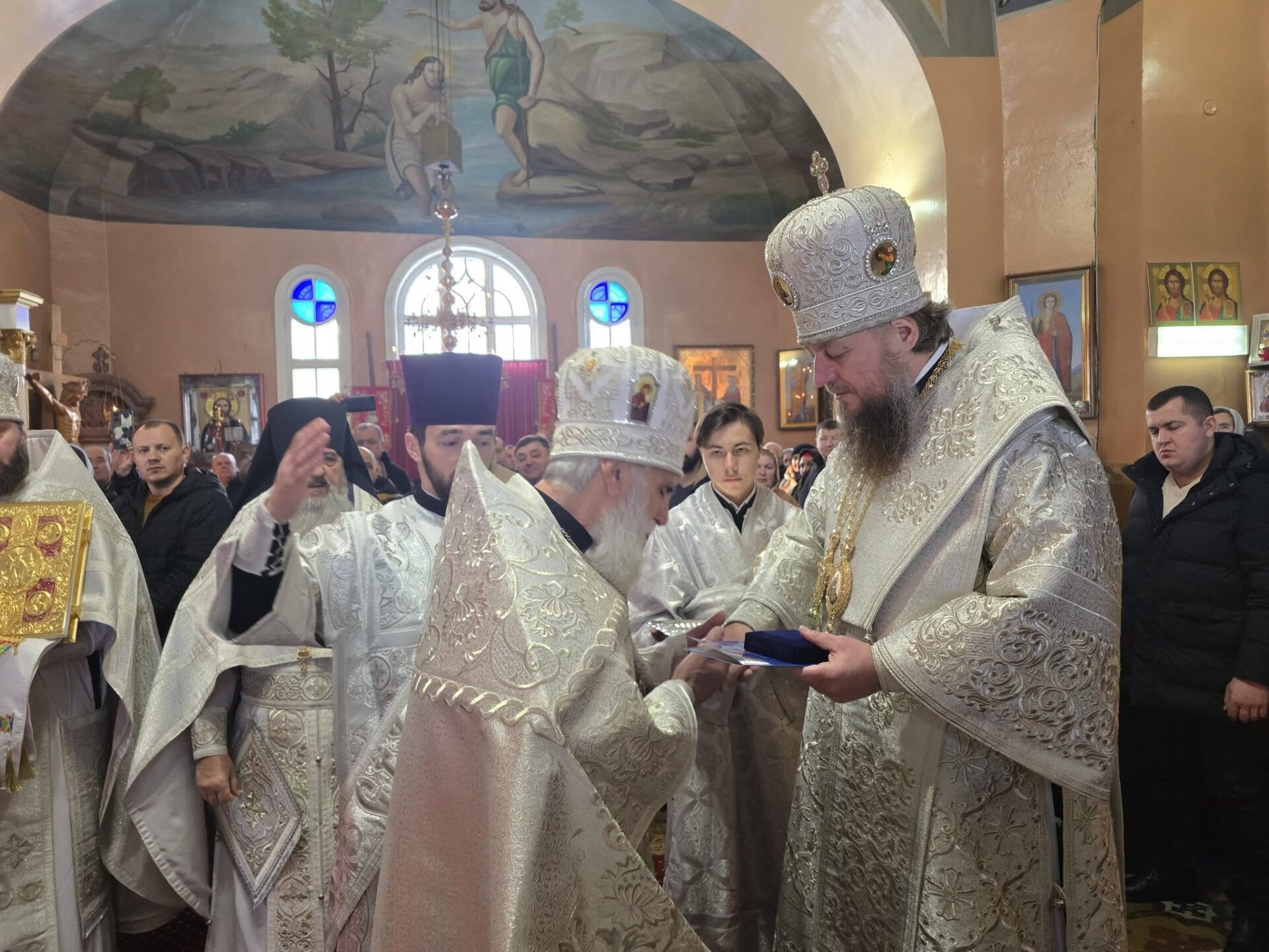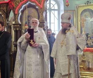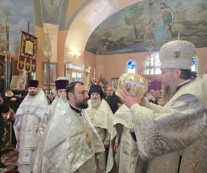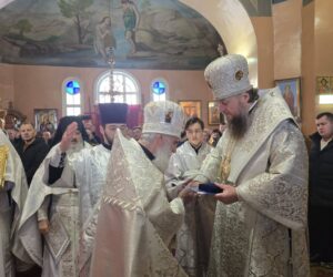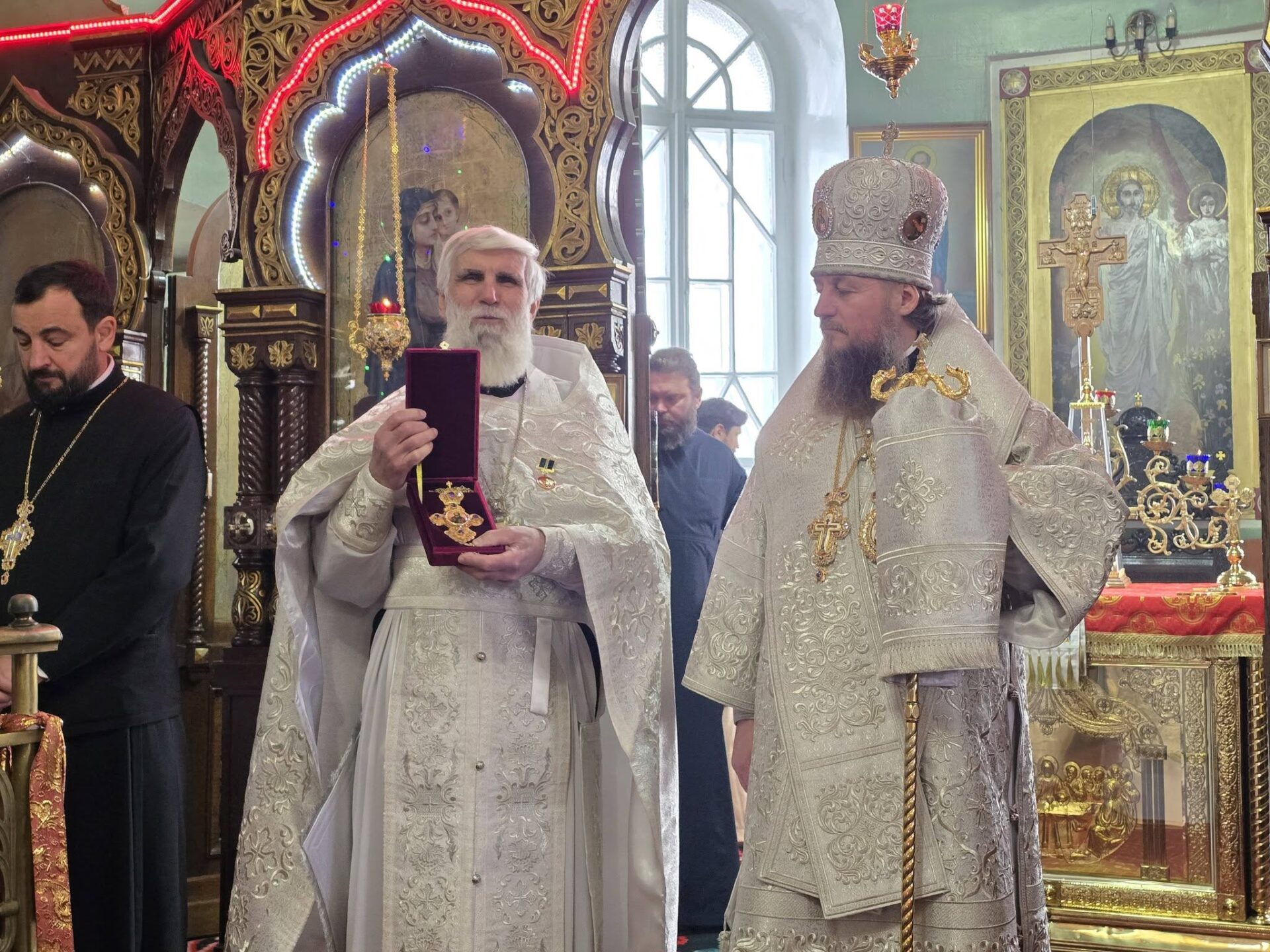 În timpul vohodului mic, părintele Vasile ȚĂRUȘ a fost decorat cu medalia eparhială „Icoana Maicii Domnului „Cu trei mâini””, iar protoiereul Andrei POPOVICI, clericul bisericii gazdă, cu prilejul jubileului de 50 de ani ai vieții și 30 de ani de slujire clericală, a primit dreptul de a purta mitră.