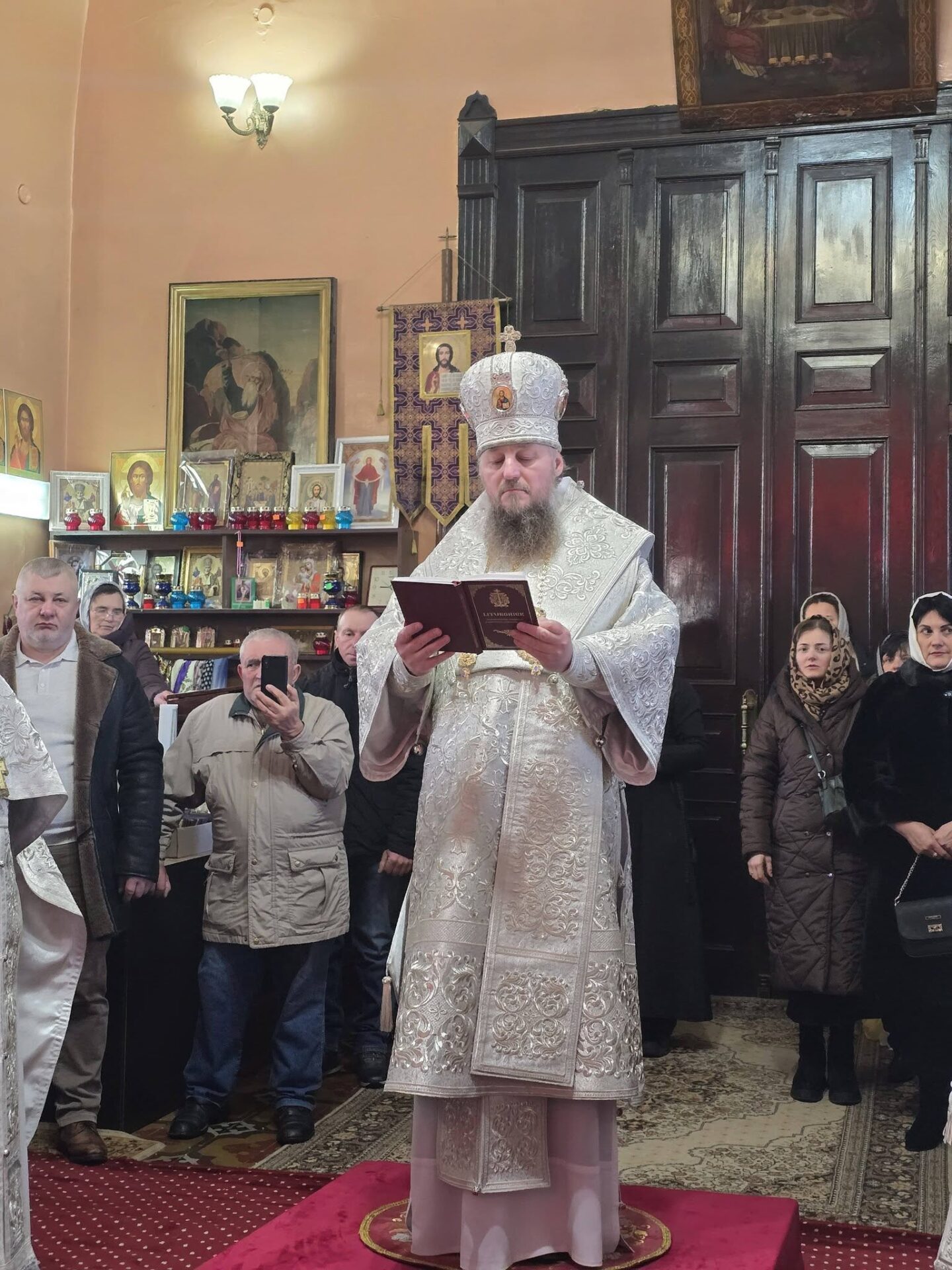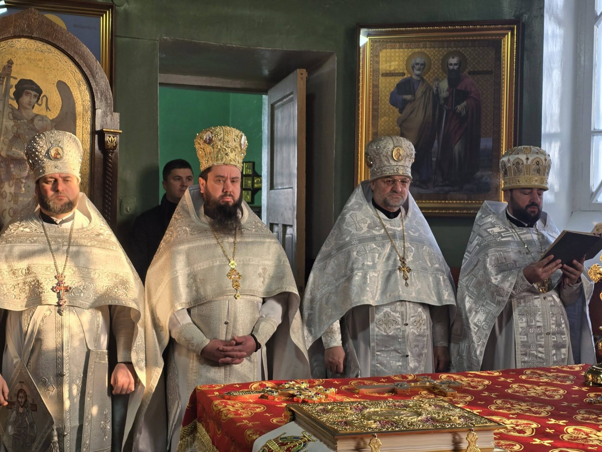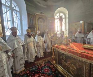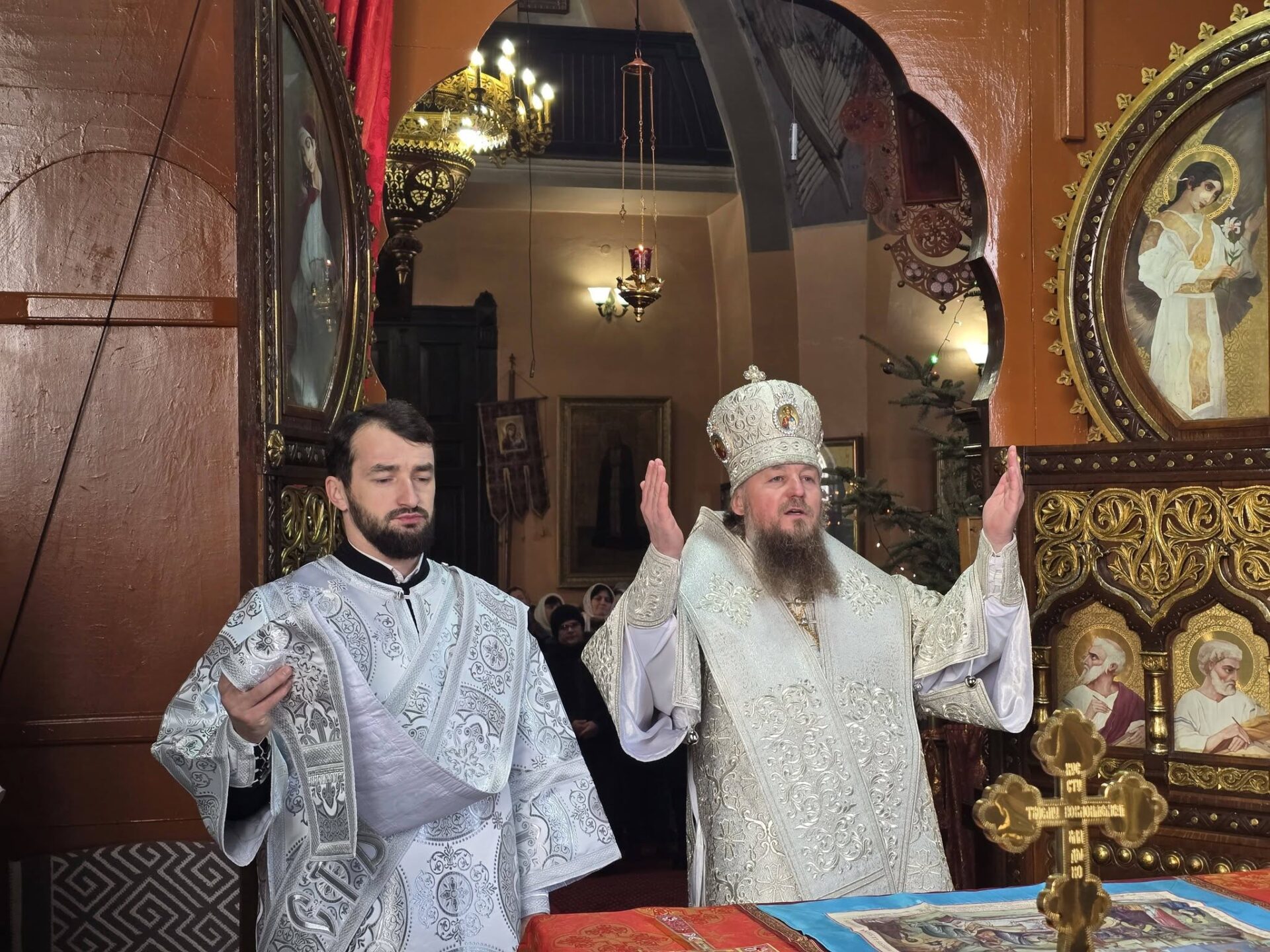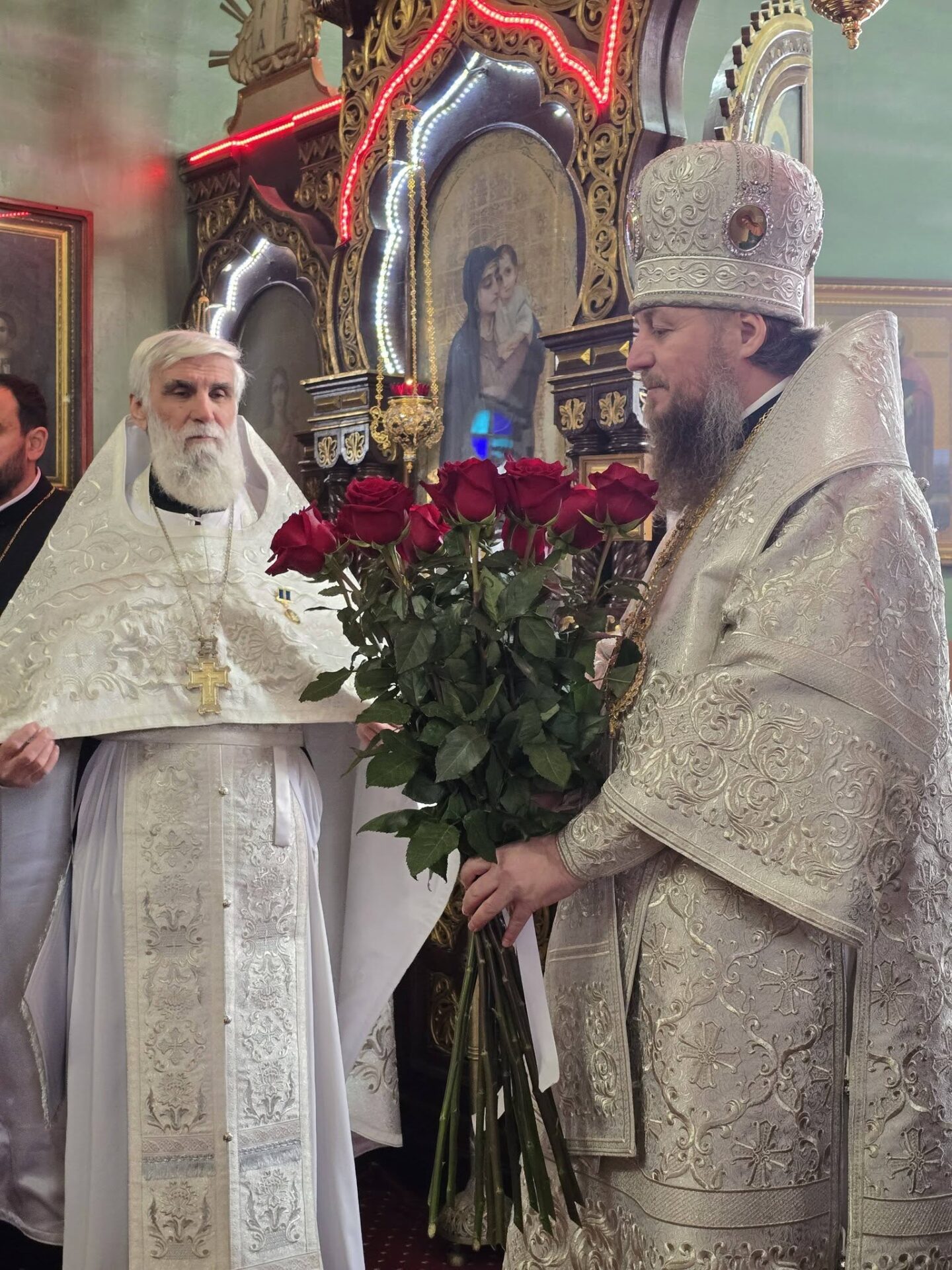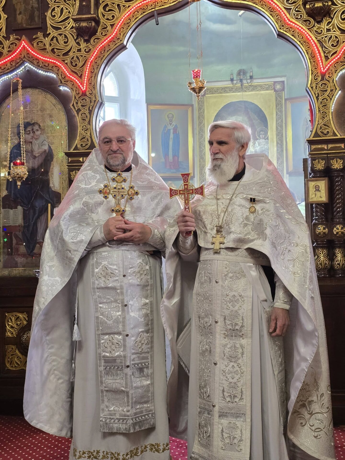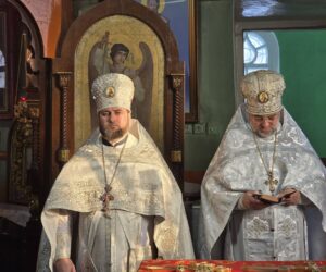 În timpul vohodului mic, părintele Vasile ȚĂRUȘ a fost decorat cu medalia eparhială „Icoana Maicii Domnului „Cu trei mâini””, iar protoiereul Andrei POPOVICI, clericul bisericii gazdă, cu prilejul jubileului de 50 de ani ai vieții și 30 de ani de slujire clericală, a primit dreptul de a purta mitră.