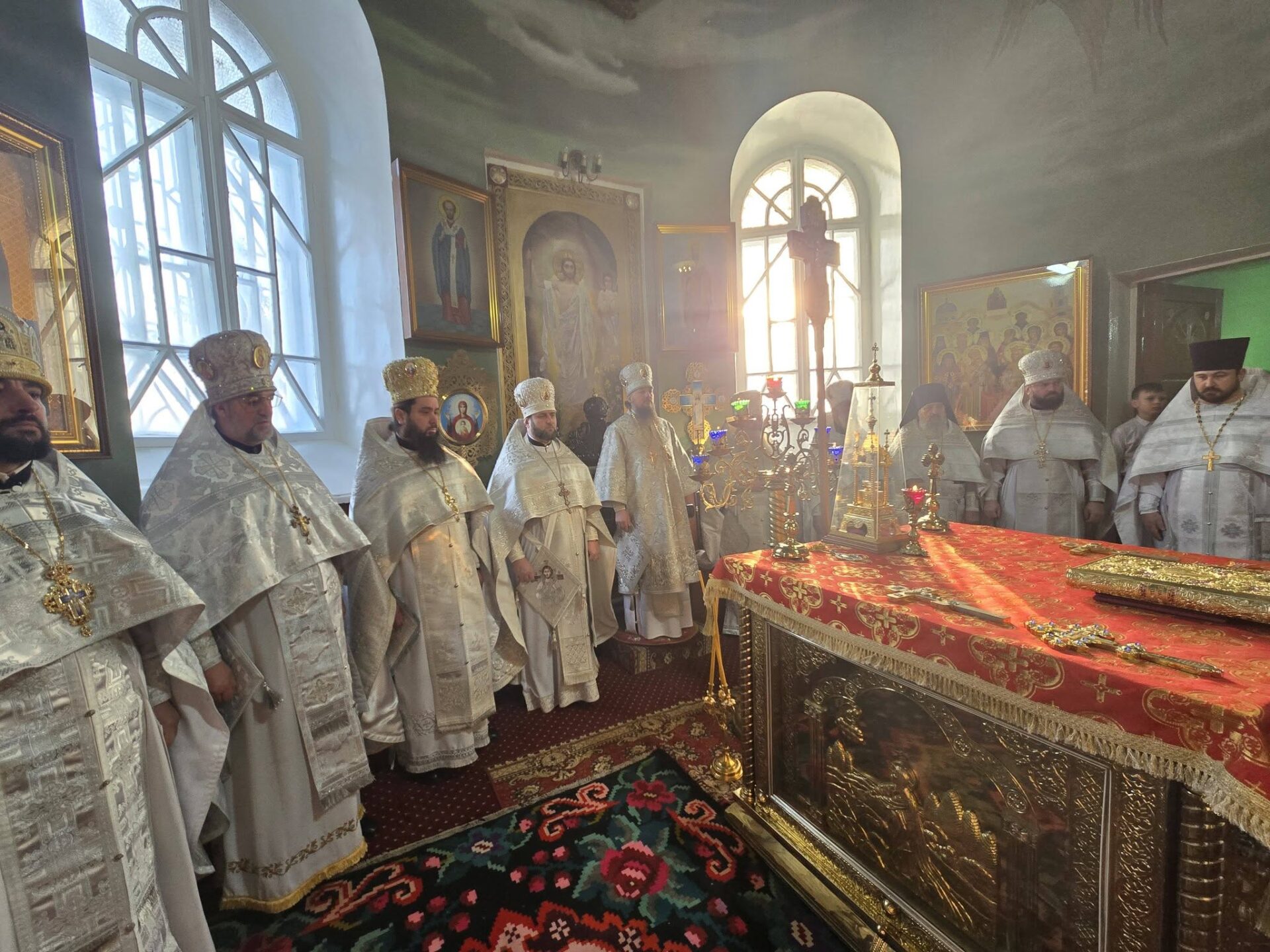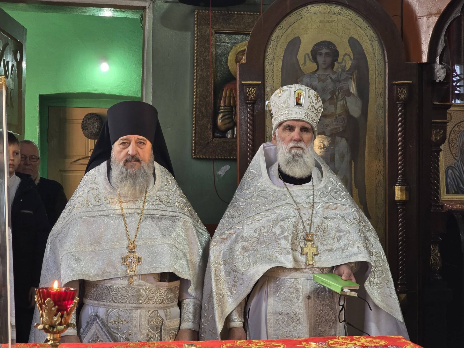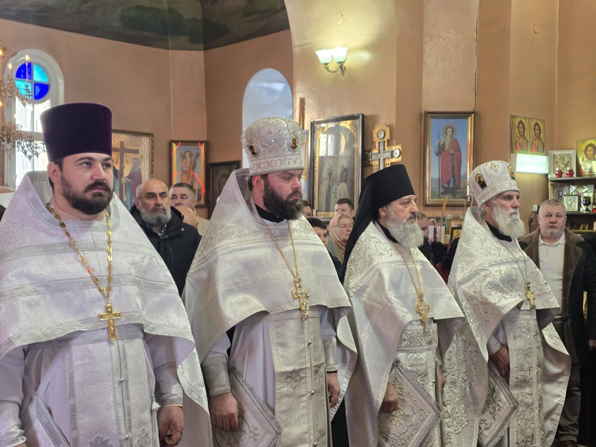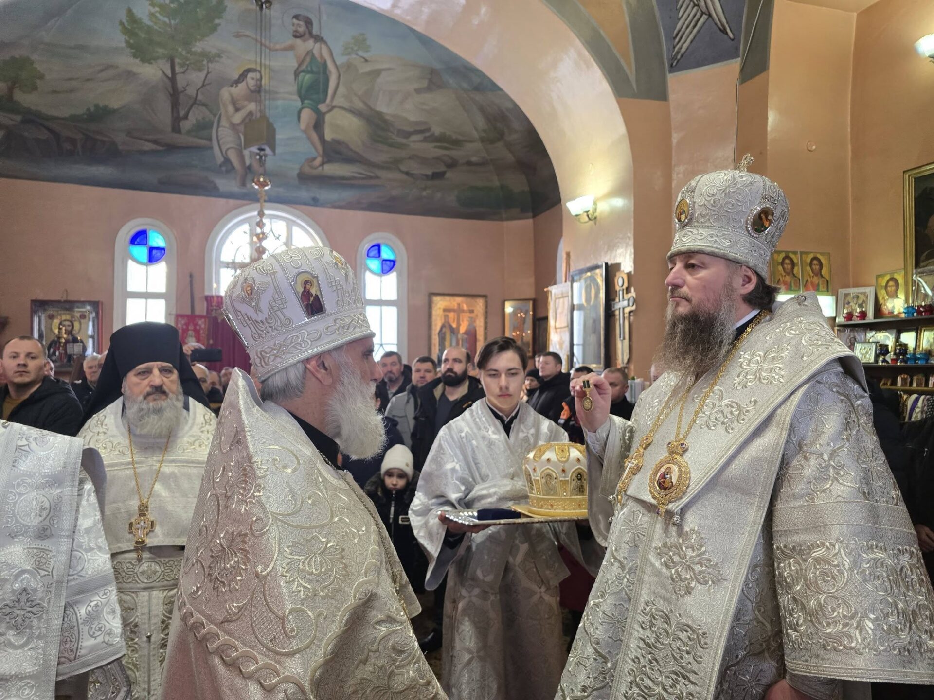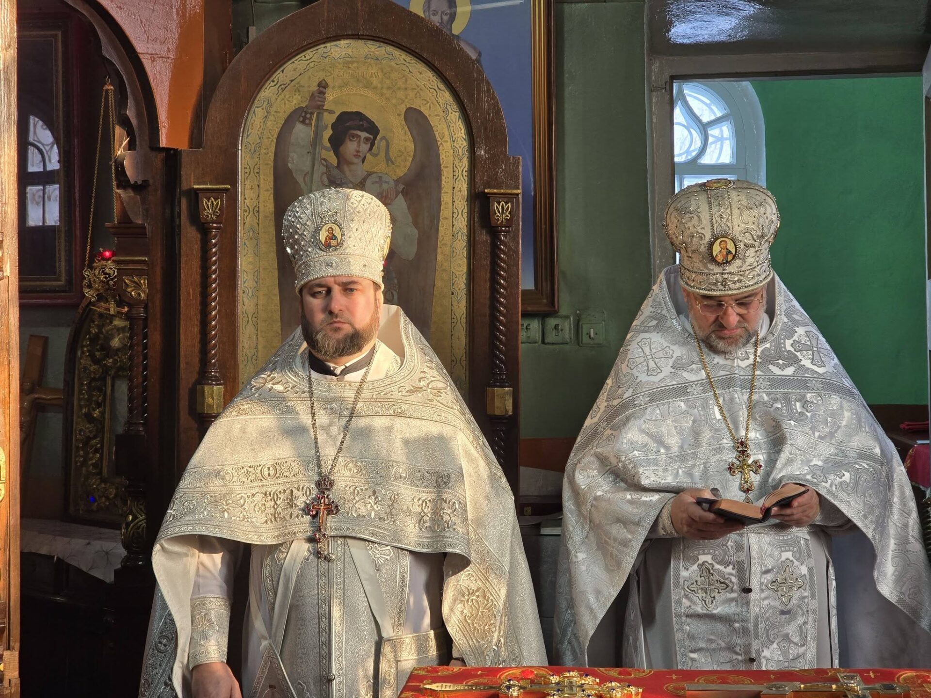 În timpul vohodului mic, părintele Vasile ȚĂRUȘ a fost decorat cu medalia eparhială „Icoana Maicii Domnului „Cu trei mâini””, iar protoiereul Andrei POPOVICI, clericul bisericii gazdă, cu prilejul jubileului de 50 de ani ai vieții și 30 de ani de slujire clericală, a primit dreptul de a purta mitră.