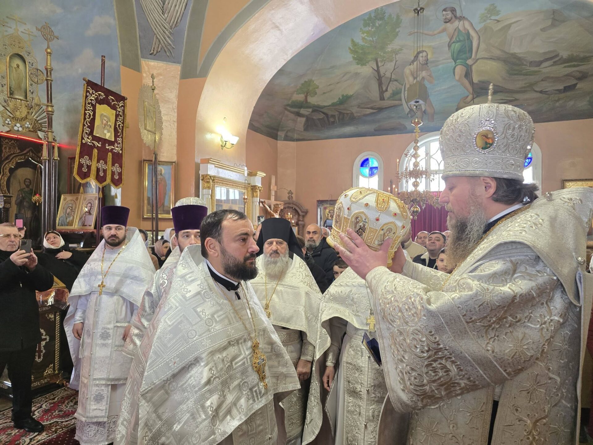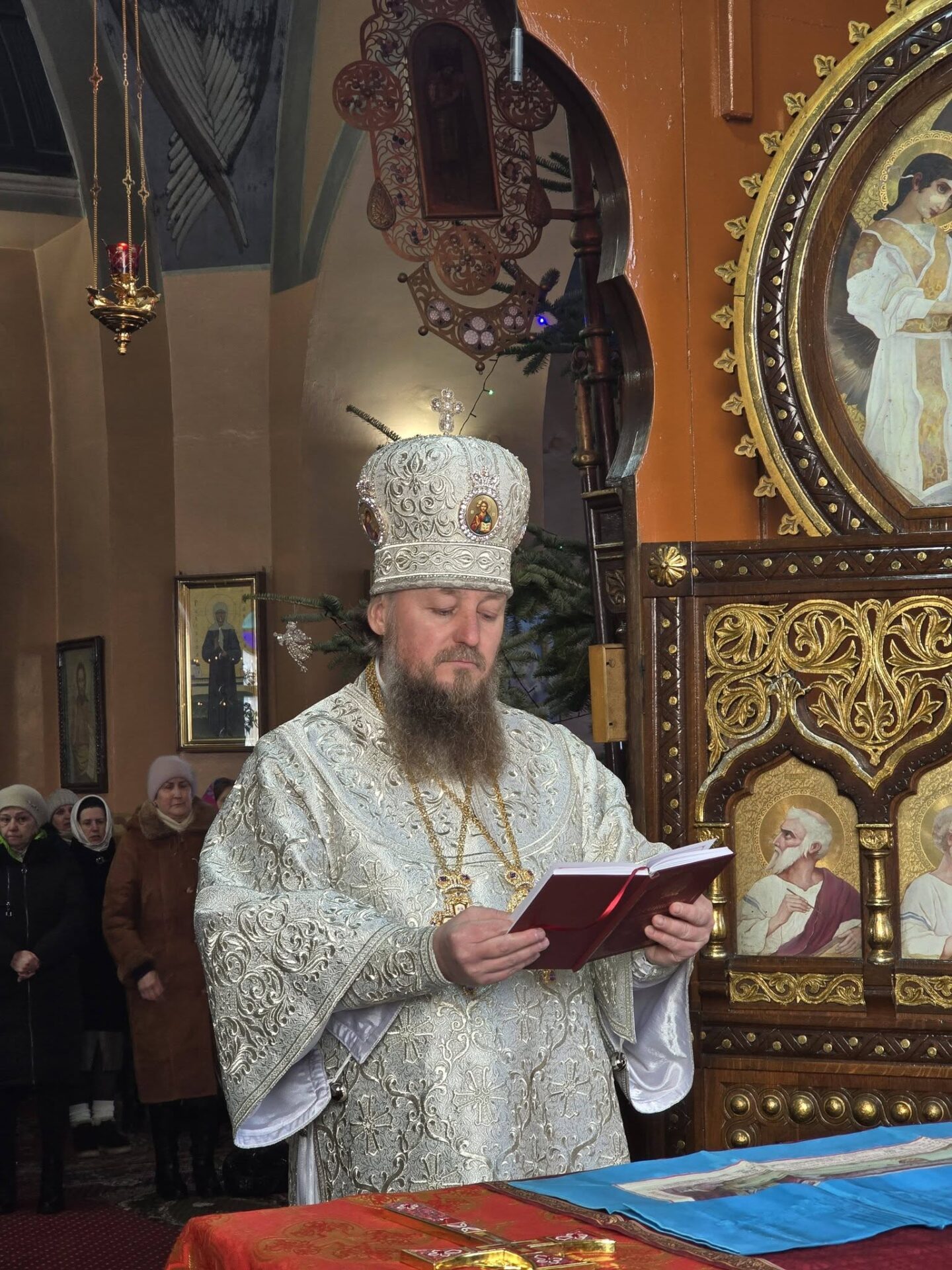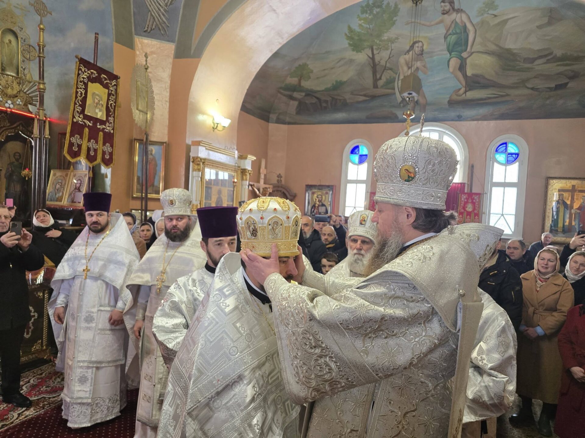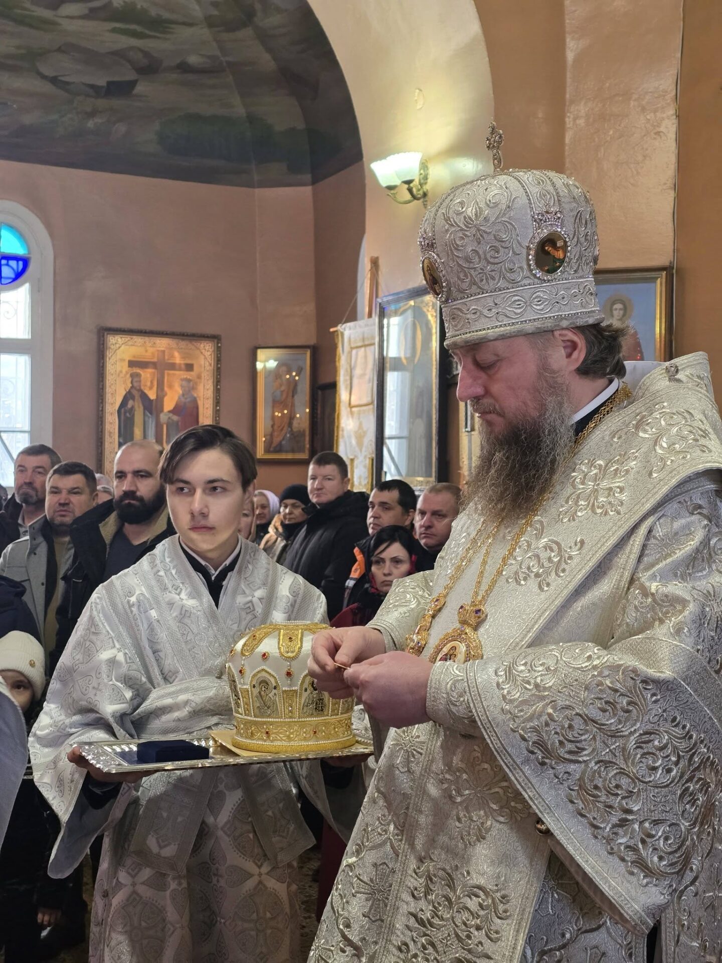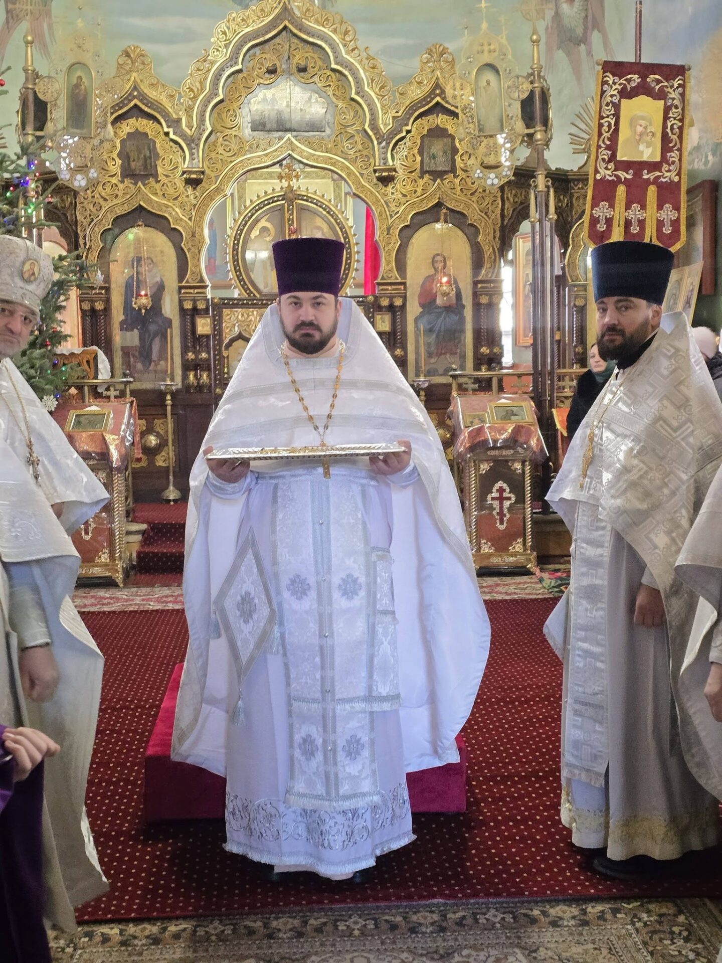 În timpul vohodului mic, părintele Vasile ȚĂRUȘ a fost decorat cu medalia eparhială „Icoana Maicii Domnului „Cu trei mâini””, iar protoiereul Andrei POPOVICI, clericul bisericii gazdă, cu prilejul jubileului de 50 de ani ai vieții și 30 de ani de slujire clericală, a primit dreptul de a purta mitră.